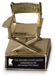 The Golden Chair is awarded to those individuals and corporations in recognition for their contribution to film/video/TV production in Minnesota. The award is handed out each year during the Minnesota Film Board's Annual Meeting, the yearly salute to the Minnesota production community and its supporters. Past Golden Chair recipients have included everyone from Target Corporation to former Minnesota Governor Arne Carlson. Below is a complete list of the recipients of the Golden Chair award.